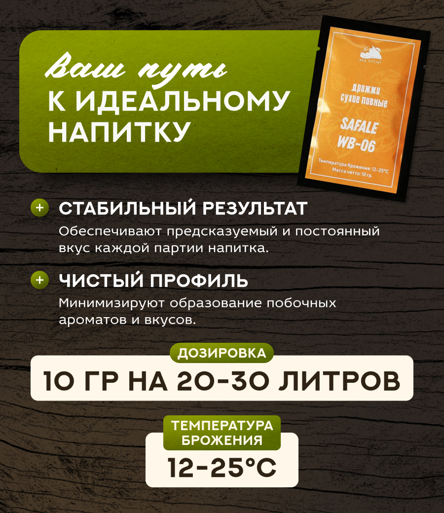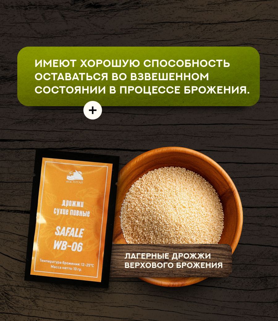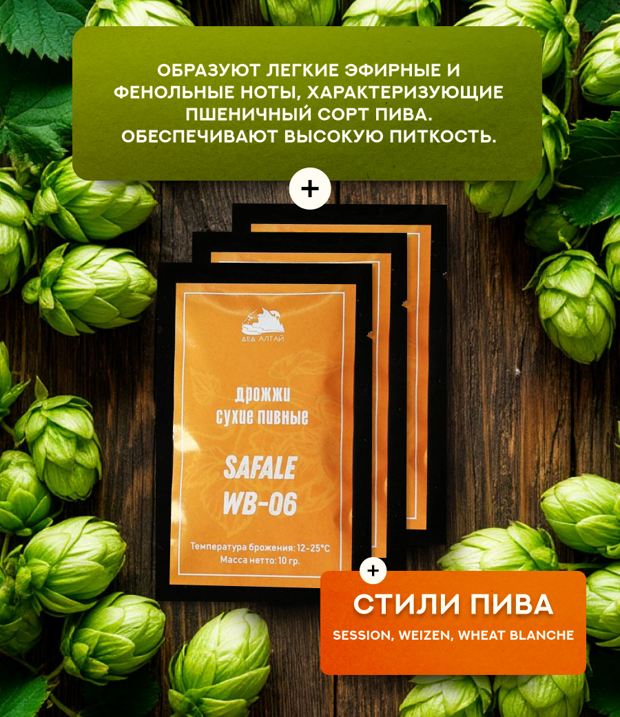 Дрожжи пивные Safale WB-06, отобранные для производства пшеничного пива. Образуют легкие эфирные и фенольные ноты, характеризующие