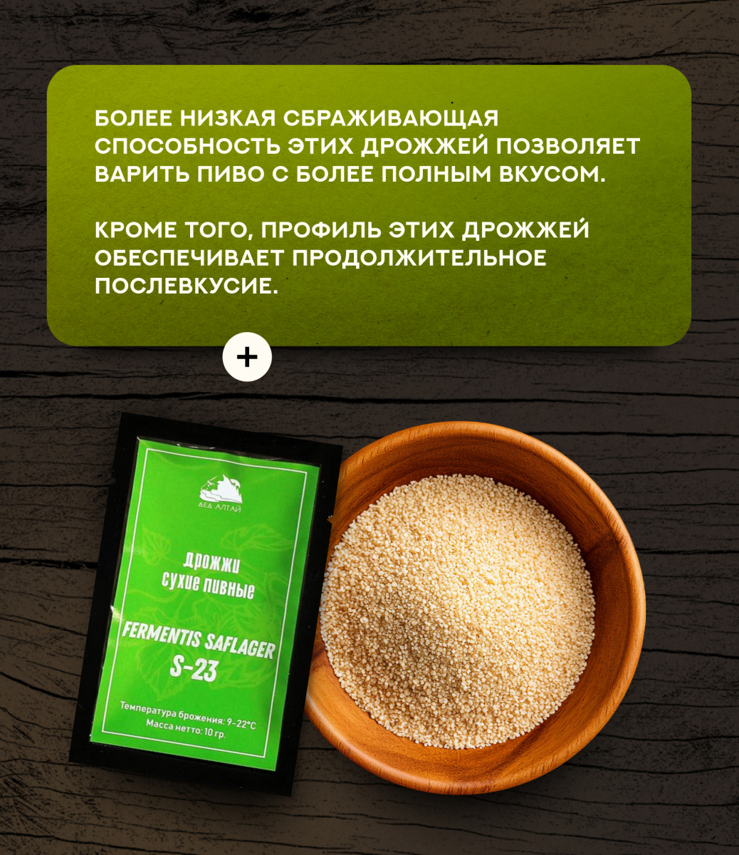 Дрожжи Fermentis Saflager S-23 низового брожения рекомендуются для производства фруктовых и эфирных профилей пива типа лагер.