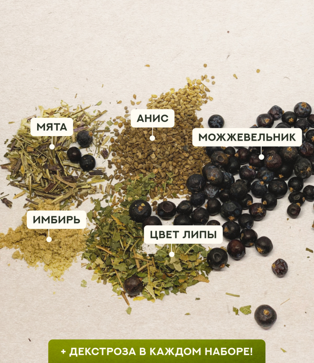 Состав:можжевельник, цвет липы, мята, анис, имбирь, декстроза.